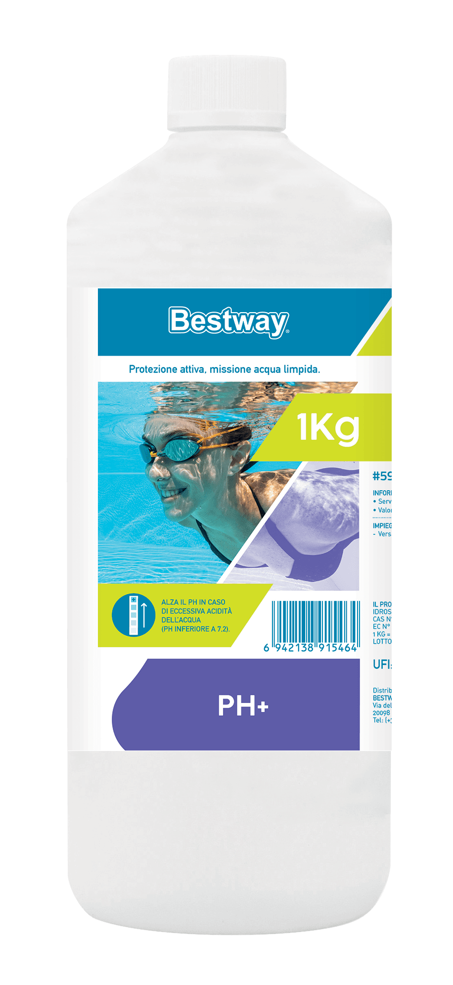 Misurare e regolare il pH non è mai stato così facile. Se il valore è troppo basso, aggiungere la quantità appropriata del nostro correttore liquido pH+. Con soli 10 grammi di prodotto per ogni metro cubo d'acqua, puoi alzare il valore del pH di 0,1 unità, riportando l'acqua alla giusta alcalinità. Dopo aver aggiunto il correttore liquido pH+, è sufficiente attendere almeno un ciclo di filtrazione per vedere i risultati. Noterai immediatamente un miglioramento nella qualità dell'acqua e una maggiore chiarezza. Per ulteriori informazioni sulla regolazione del pH consulta la nostra guida completa sul trattamento chimico.
